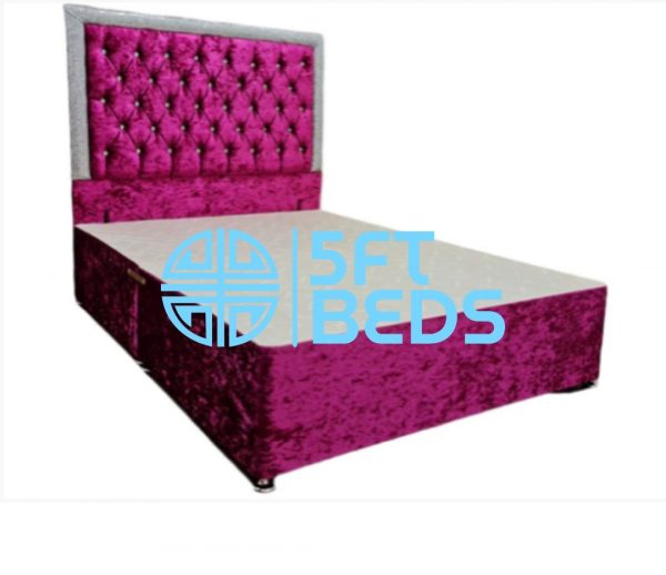 Add sparkle and glam to any bedroom with this modern glitter divan bed finished with a tall 54″ deep padded chesterfield design headboard.