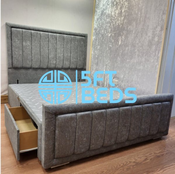 Charles designer bed is divan base paired with a 54″ high headboard and matching foot board giving this stylish bed a stunning modern look.