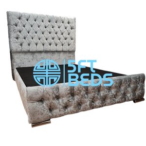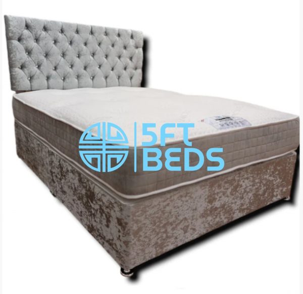 Crushed Velvet 5ft King Size Divan Bed with Chesterfield Headboard