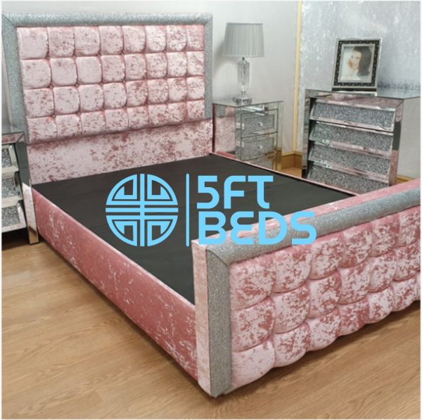 The Lexi Glitter Frame Bed. A luxury handcrafted bed. Supplied with framed boards for extra strength rather than individual slats that allows seasonal storage. For your daily storage needs the ottoman gas lift up option can be added.