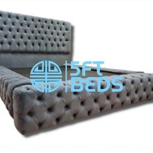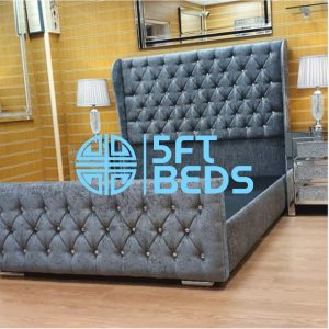 Luxury Crushed Velvet Chesterfield Sleigh 5ft King Size Frame Bed